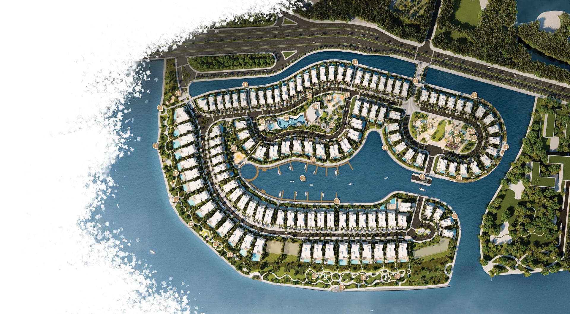 Các dinh thự trong Bộ sưu tập được bố trí dọc theo Bến du thuyền, kết nối chủ nhân dinh thự đến mọi nơi trong nội khu với tầm nhìn hoàn mỹ